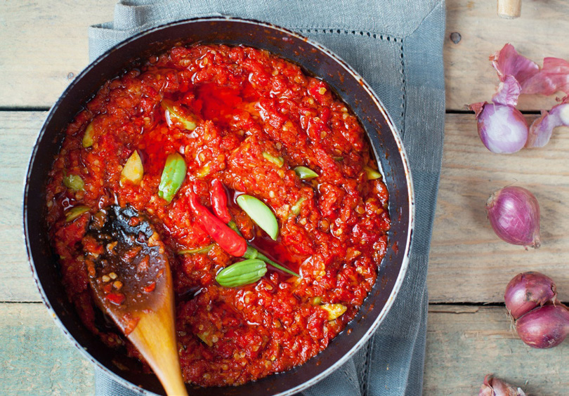 Chili-Saucen können unterschiedliche Mengen an Salz enthalten. Salz ist in Wasser löslich. Es enthält 40% Natrium (Na), ein Mineral, das der Körper in geringen Mengen für die Aufrechterhaltung des Blutdrucks und des Flüssigkeitshaushalts sowie für die Übertragung von Nervenimpulsen benötigt. Neben Salz ist Natrium auch in Mononatriumglutamat (MSG), Backpulver und Natron enthalten. Zu viel Natrium kann den Blutdruck erhöhen und die Nieren schädigen.