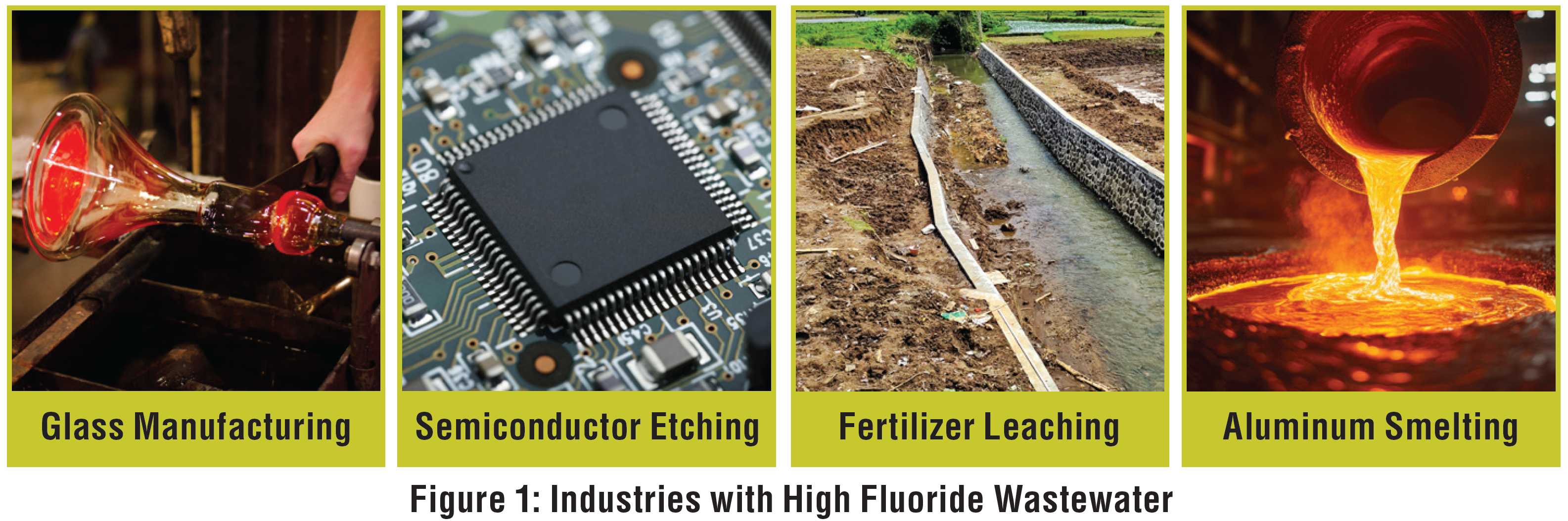 Industrien wie die Glasherstellung, die Aluminium-(Metall-)Verhüttung, die Halbleiterproduktion und die Düngemittelverarbeitung erzeugen Abwässer mit hohen Fluoridkonzentrationen, die ein erhebliches Umwelt- und Gesundheitsrisiko darstellen.1