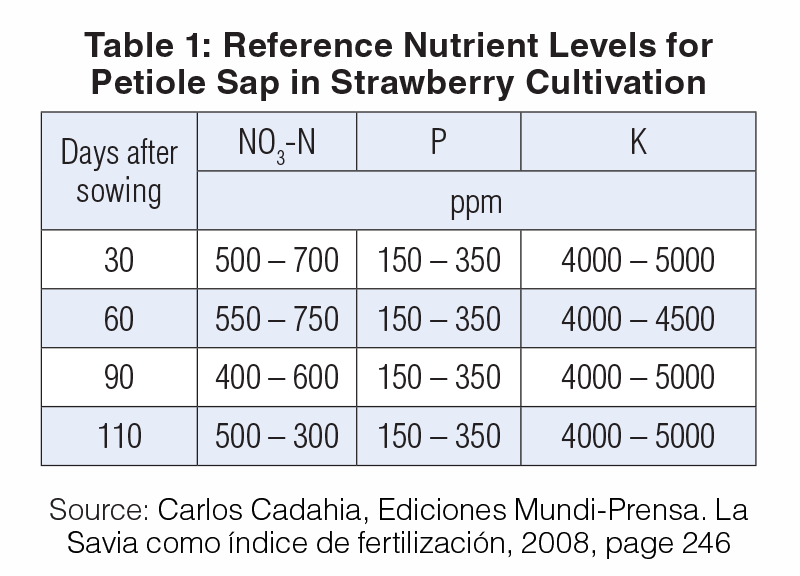 Die Analyse des Pflanzensaftes liefert Informationen über den aktuellen Ernährungszustand der Pflanze. Diese Informationen ermöglichen eine Feinabstimmung des Stickstoffeinsatzes, um den Ertrag und die Qualität zu maximieren und die Fruchtsaison zu verlängern. Die Analyse des Pflanzensaftes ergänzt die Analyse der Bodenlösung.